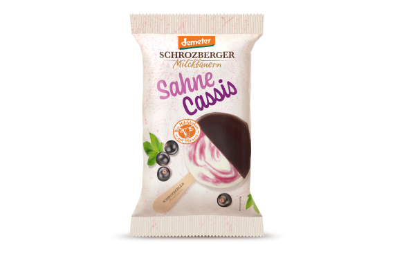 Zutaten: Magermilch** 30%, Sahne** 25%, Rübenzucker** 11%, schwarze Johannisbeerenpüree* 10%, kakaohaltige Fettglasur* 10% (Kokosöl*, Rohrzucker*, Palmöl*, fettarmes Kakaopulver*, Magermilchpulver*, Emulgator [Sonnenblumenlecithine*]), Glukosesirup*, Magermilchpulver** 3%, Eigelb** 3%, Zitronensaft*, Stabilisator (Johannisbrotkernmehl*), färbendes Lebensmittel (Rote Betesaftkonzentrat*).